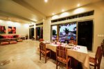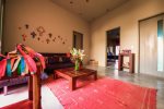Alma Rosa ground floor is composed of living room, dining, kitchen and all open up with sliding glass doors to the pool and garden. A large wood dining table sits 10 to 12 comfortably and can be made more intimate for smaller groups.