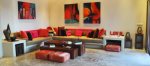 Outdoor Seating with comfy cushions providing relaxed al fresco dining on low level table.